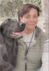 She loves the way a Flatcoated Retriever is up for everything! The perfect companion on a hike one day, a true worker the next day, and your best friend on the sofa every day.